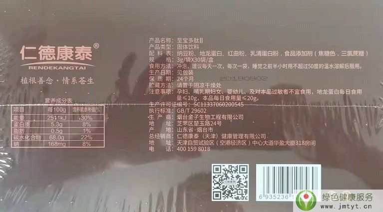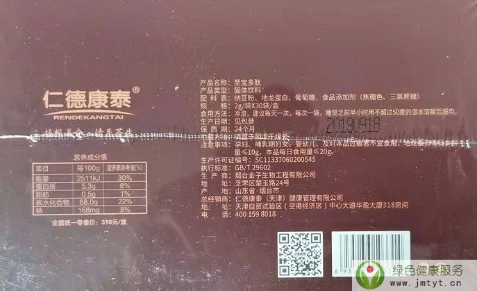 仁德康泰至寶多肽一號,每盒398,30袋,每袋兩克,適合一些年輕的亞健康人群以及老年清除血液垃圾,適合所有人食用,反應較小一點。