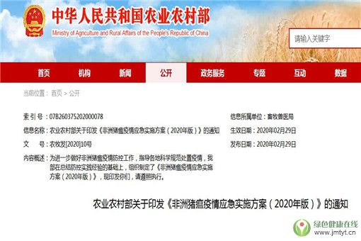 2019年非洲豬瘟導致豬肉價格上漲,那么2020年非洲豬瘟會持續(xù)嗎?農業(yè)農村部印發(fā)《非洲豬瘟疫情應急實施方案(2020年版)》通知如下,一看便知!