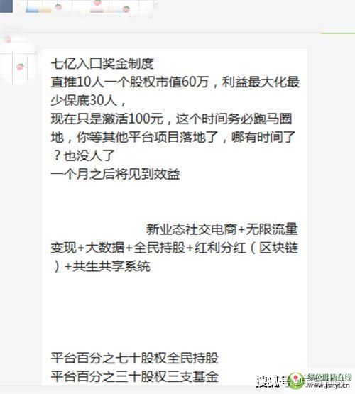 說到這里,大家就要想想,既然交200元錢加入,就要給60萬,何必收大家的錢呢?直接在60萬里面把200元扣出來不就行了嗎?一個才注冊成立1400萬的空殼公司,就算真的有1400萬,每人給60萬,只能給23人分,那么7億人能成為中產階級嗎?一個天大的餡餅,一個天大的謊言,說多了,對于參與者都是淚!【文章來源:利箭在出擊,版權歸原作者,如有侵權,聯系刪除,特此鳴謝】