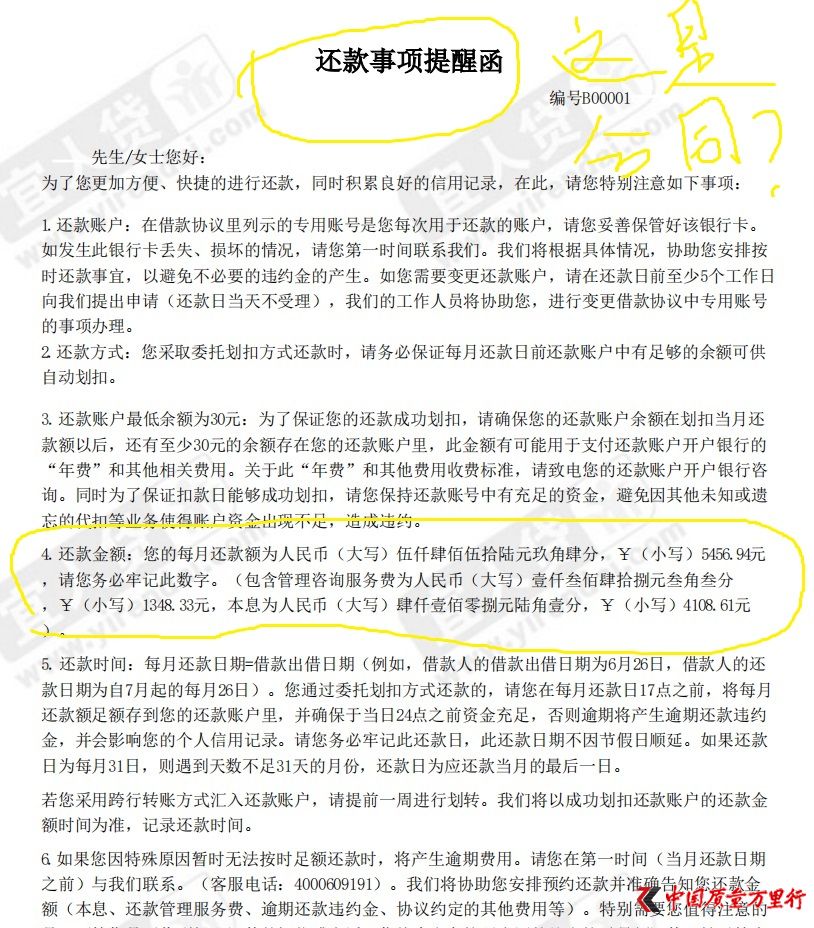 湖北宜昌楊先生遭遇更不好。在宜人貸借了一筆五萬元錢,分36期還,總共要還七萬三千多,利息有兩萬多。