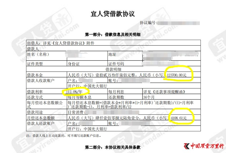 “宜人貸砍頭息高。借款120000元,合同146000元”