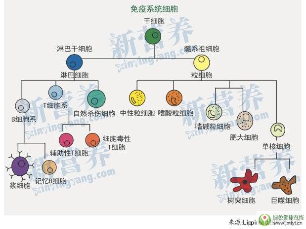 這樣講或許還是有些抽象,所以具體而言,免疫系統主要包括免疫器官、免疫細胞和免疫活性物質。其中,免疫器官是免疫細胞生成、成熟或集中分布的場所,比如骨髓、胸腺、脾、淋巴結、扁桃體;而免疫細胞理所當然就是發揮免疫作用的細胞,比如吞噬細胞、淋巴細胞(T細胞、B細胞);同時免疫系統里還有很多活性物質,比如抗體、淋巴因子、溶菌酶等。