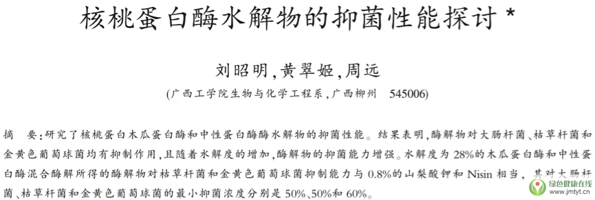 核桃蛋白酶水解物具有極強的抗菌作用,能有效抑制人體有害菌的菌落數量,使人體免于有害菌落的傷害。同時能增強吞噬細胞的吞噬能力,清除凋亡細胞、代謝廢物和有害病毒細胞,提高人體綜合免疫力。