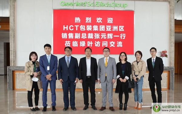 2020年4月8日,HCT包裝集團亞洲區銷售副總裁張元輝一行蒞臨綠葉洽談合作,綠葉科技集團董事長徐建成攜集團高管熱情陪同參觀并舉行座談,雙方就彩妝、護膚產品包裝方案及展廳設計等方面內容進行詳細商談,為下一階段即將開展的合作打下了堅實的基礎。