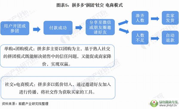 目前主流的社交電商商業模式包括會員分銷模式、拼團模式、網紅直播模式、內容引流模式和社區團購模式,其中拼多多作為拼團模式的代表電商平臺,迅速占據下沉市場份額,成為僅次于阿里和京東的中國第三大電商平臺。