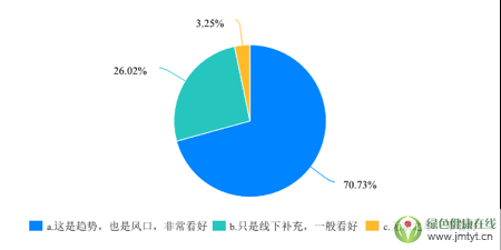 4.超過70%的受訪者認為,線上(電商)平臺是風口,但也有1/5的受訪者認為,只是線下的補充