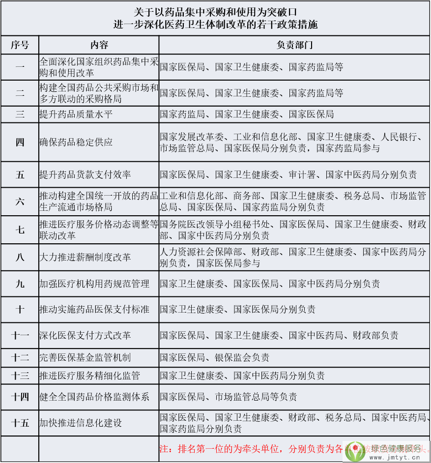 文件提出15項措施,包括全面深化國家組織藥品集中采購和使用改革、構建全國藥品公共采購市場和多方聯動的采購格局、提升藥品質量水平、確保藥品穩定供應等,并明確了各項工作的負責部門,具體如下。(點擊閱讀原文件)