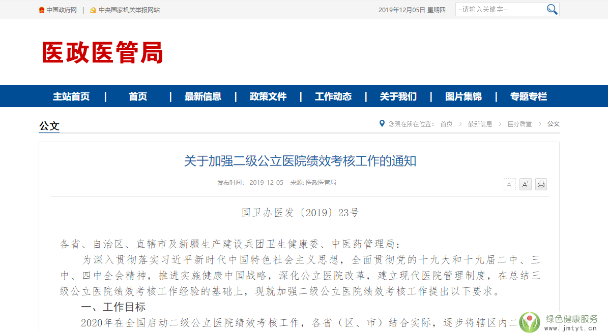 《通知》提出,到2022年建立較為完善的二級公立醫(yī)院績效考核體系。