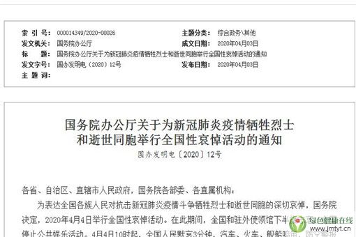 國務院辦公廳關于為新冠肺炎疫情犧牲烈士和逝世同胞舉行全國性哀悼活動的通知國辦發明電〔2020〕12號