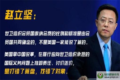 趙立堅還補充了一個事實:“世衛組織會員國繳納會費的比例和標準是由會員國共同確定的,不是美國一家能說了算的。及時、足額繳納會費是美國作為世衛組織成員國應盡的義務,而不是可以討價還價的。美國任意對國際組織斷供、減資的行為是單邊主義行徑,違反自身國際義務。”趙立堅說,美國拿中國說事,在履行應向世衛組織承擔的國際義務問題上推卸責任、討價還價,是打錯了算盤,找錯了對象。
