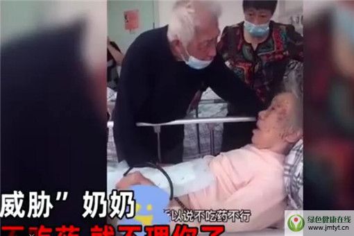 這位網(wǎng)友99歲的爺爺和97歲的奶奶一起在醫(yī)院住院,97歲的奶奶不肯吃藥,爺爺勸說(shuō)奶奶吃藥急得都快哭了,還“威脅”奶奶:如果不吃藥,就不理你了。