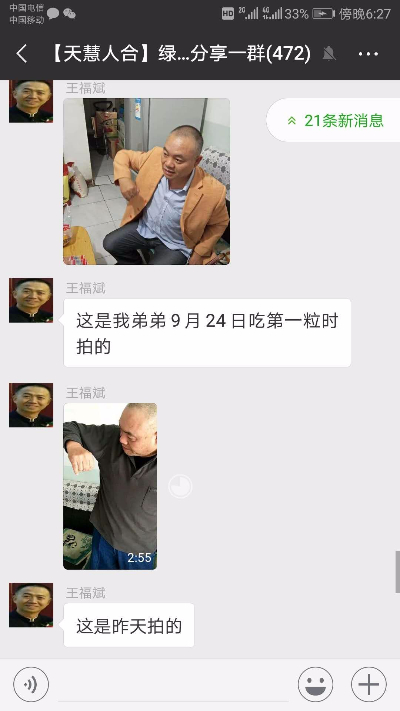 大家好!我是王福斌,來自新疆石河子市。 3個月前被朋友邀請進了這個綠色動力群。進群一段時間里,被在群里面用了綠色動力調理好的各種疑難雜癥分享的病例吸引住了。我以前是做中醫理療和保健品推廣的,對紅斑狼瘡,癲癇,白癲瘋病,牛皮癬等免疫系統疾病和腫瘤,腎透吸,等重癥是不敢接的。沒有那個公司的保健品對這些疾病有很好的調理作用。通過在群里各位老師發的綠色動力資料的學習。我更加認識到綠色動力和我以前接觸的健康產品對調理身體的原理是有本質區別的。健康產品調理的是經絡和臟腑,綠色動力是激活修復人體細胞。看起來什么病都不治,但細胞被激活和修復好了,什么病都不治而愈了。