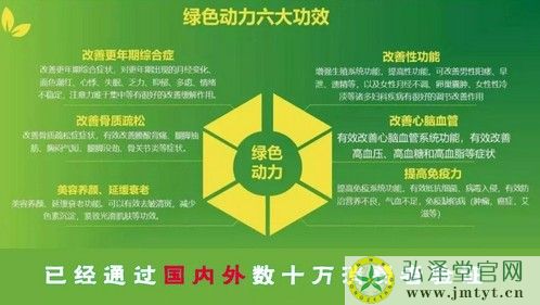 綠色動(dòng)力,具有改善心腦血管系統(tǒng)功能,改善生殖系統(tǒng)功能,改善免疫系統(tǒng)功能,改善骨骼系統(tǒng)功能,改善更年期綜合癥功能,美容瘦身養(yǎng)顏、延緩衰老。 ️ ️ ️ ️ ️
