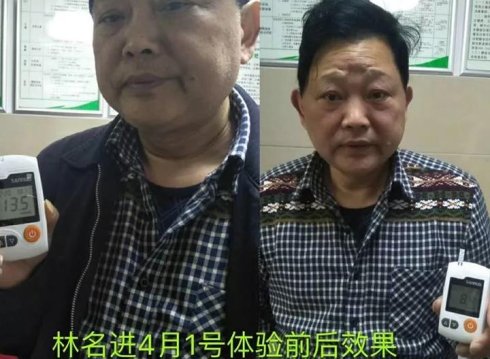 2、林先生第一次體驗旋磁式糖尿病治療儀前血糖13.5,體驗后血糖8.4。