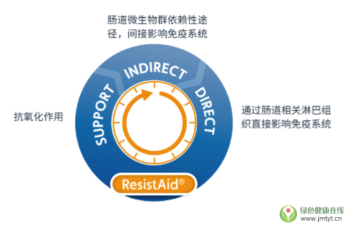 ResistAid®來自于北美落葉松樹,通過專利的水提技術提取的天然原料。ResistAid®阿拉伯半乳聚糖含有可溶性膳食纖維阿拉伯半乳聚糖以及多酚物質,通過三種途徑共同作用,支持免疫健康。